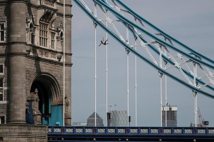Мужчина прыгает с Тауэрского моста в Лондоне, Великобритания, 1 июня 2019 года. Будем надеяться, что это был его последний прыжок с этого моста.