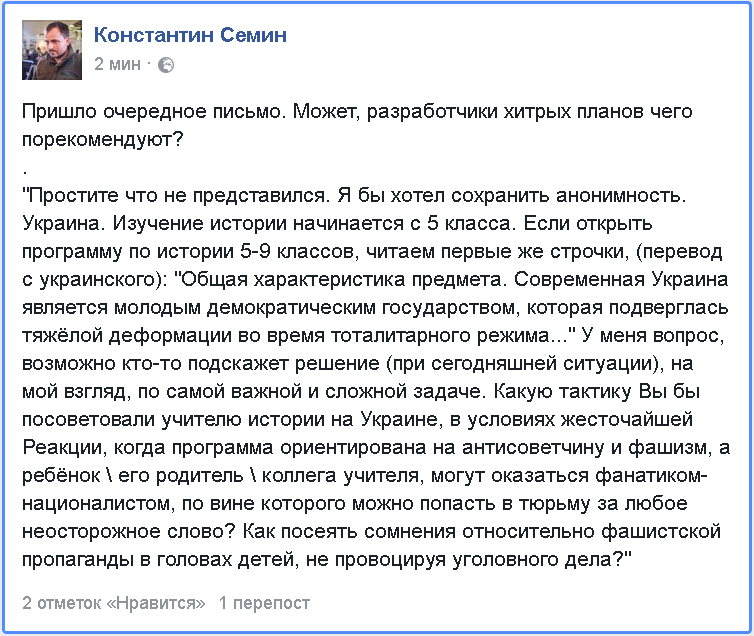 534 Fodywa 8 лет назад Украина. История. Образование https://www.facebook.com/KVSyomin/posts/843854625808250 Политика Украина Образование Школа Национализм Русофобия Фашизм Константин Семин
