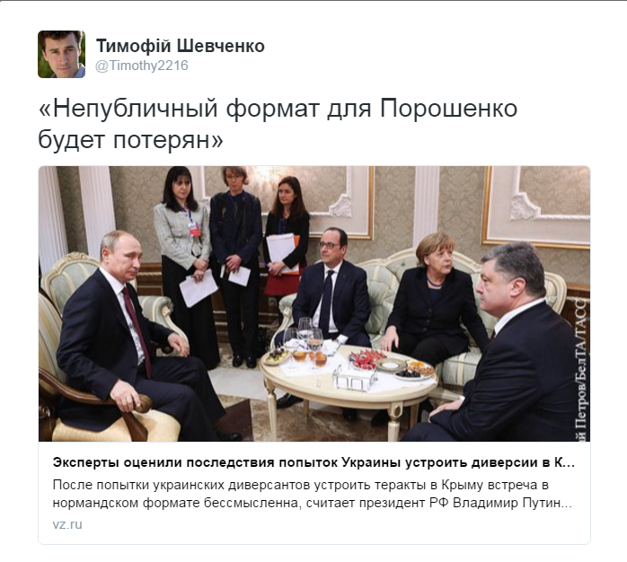 Судьбу Украины в который уже раз обсудят без участия Украины. Главы России, Франции и ФРГ, как стало известно во вторник, договорились встретиться и обсудить обстановку на Украине друг с другом, без Порошенко.