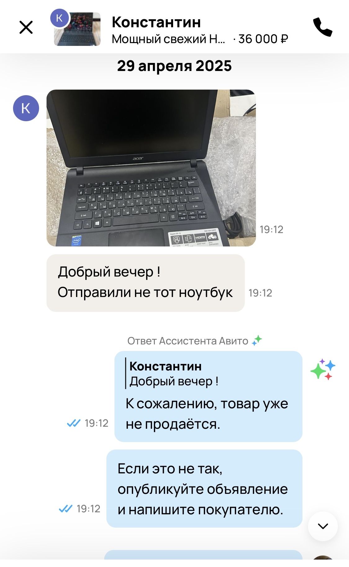Продавал на Авито хороший свежий ноутбук Hp за 36000р