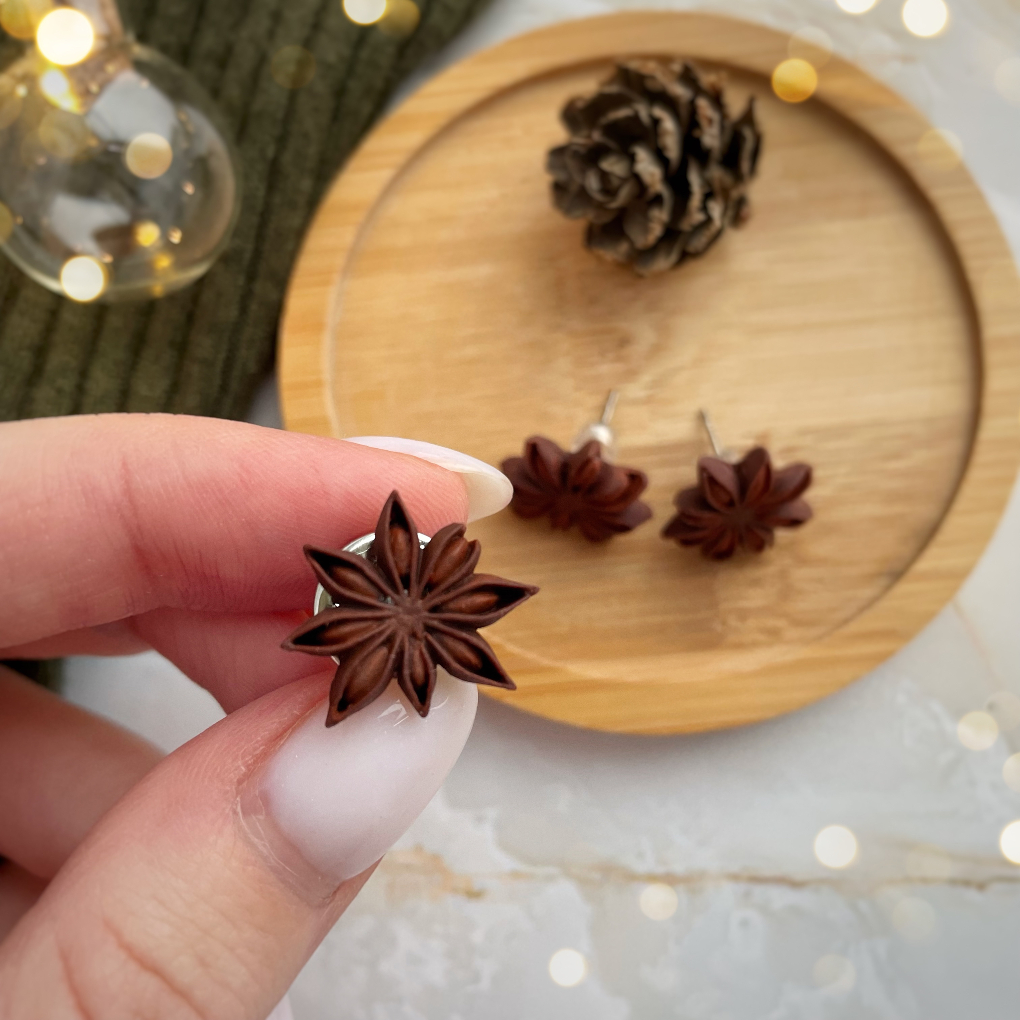 Серьги – гвоздики, мини брошь и брошь – игла с бадьяном ❤️