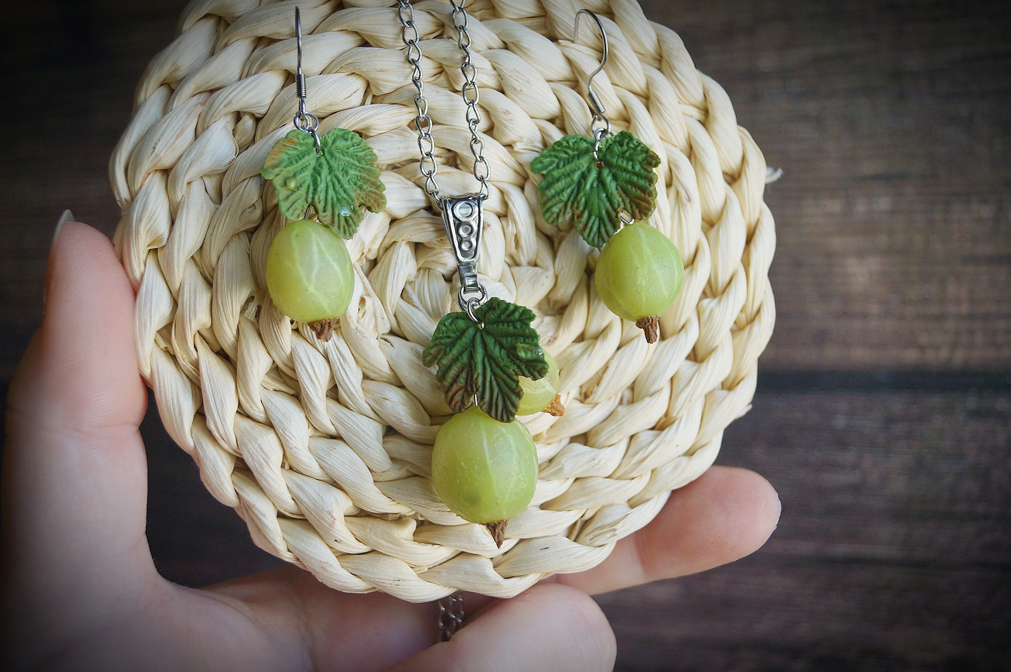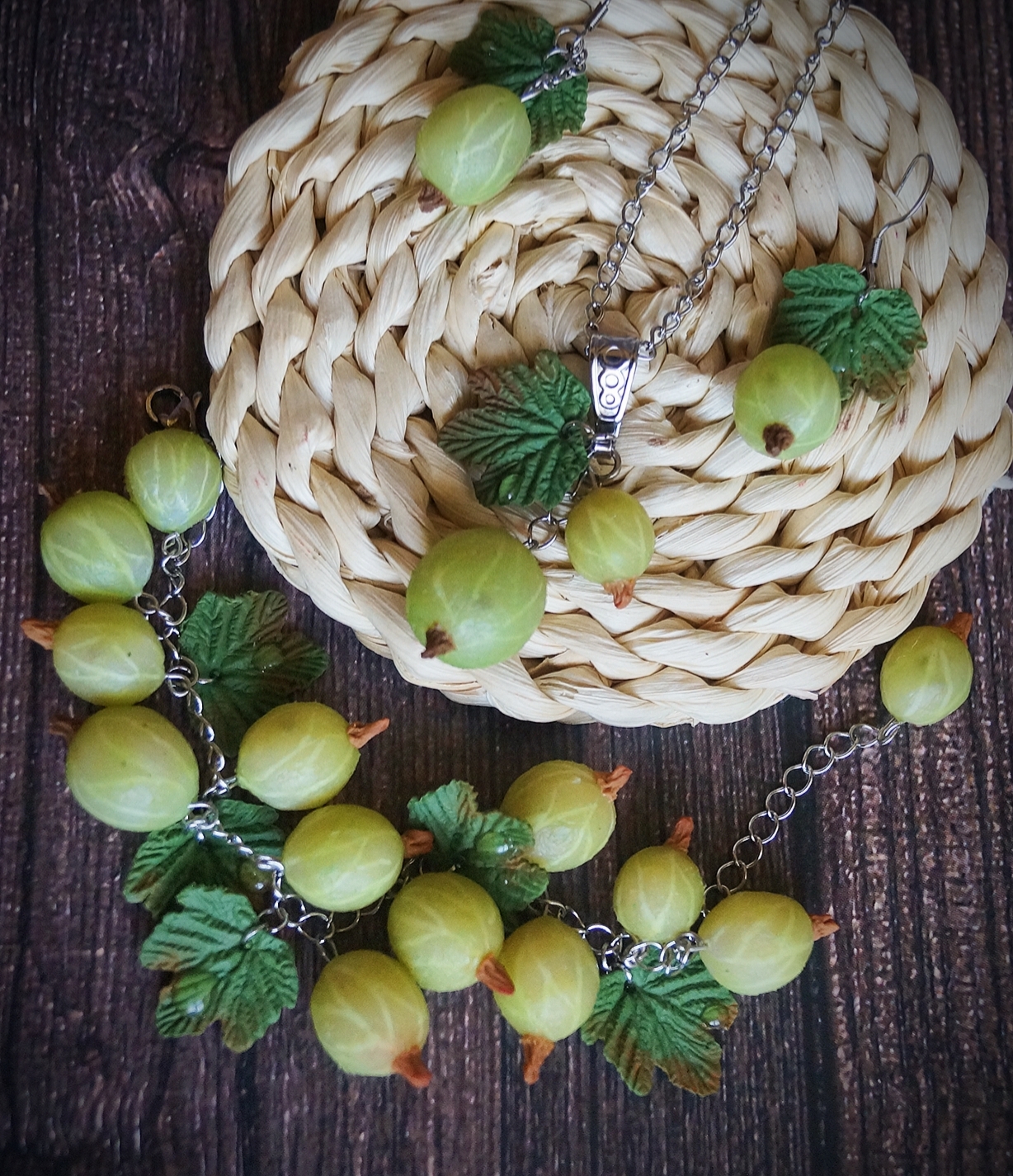 Украшения с крыжовником , полностью ручной работы