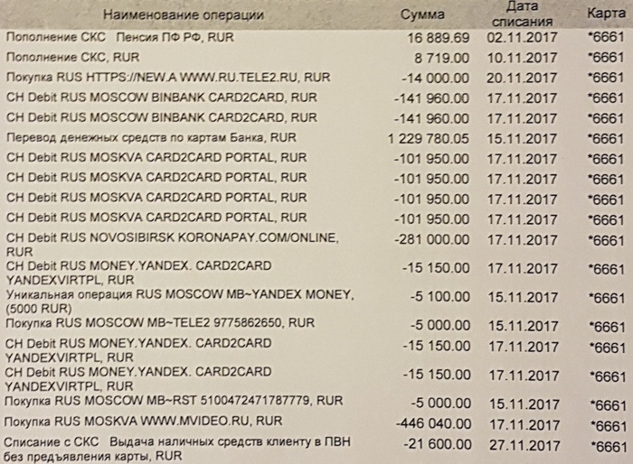 Совершенно не подозрительные транзакции: покупка в М-видео на полмиллиона, яндекс кошелек, корона, банк в Новосибирске – стандартные пенсионерские траты.