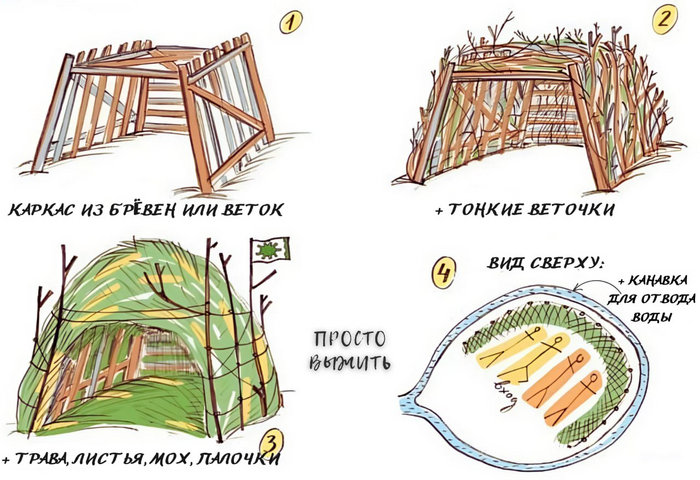 В дикой природе укрытие – ключ к выживанию. Оно защитит вас от непогоды и даёт относительный комфорт для ночлега сохраняя тепло внутри. Построить надёжное укрытие можно даже без специальных инструментов, используя только природные материалы и немного находчивости: