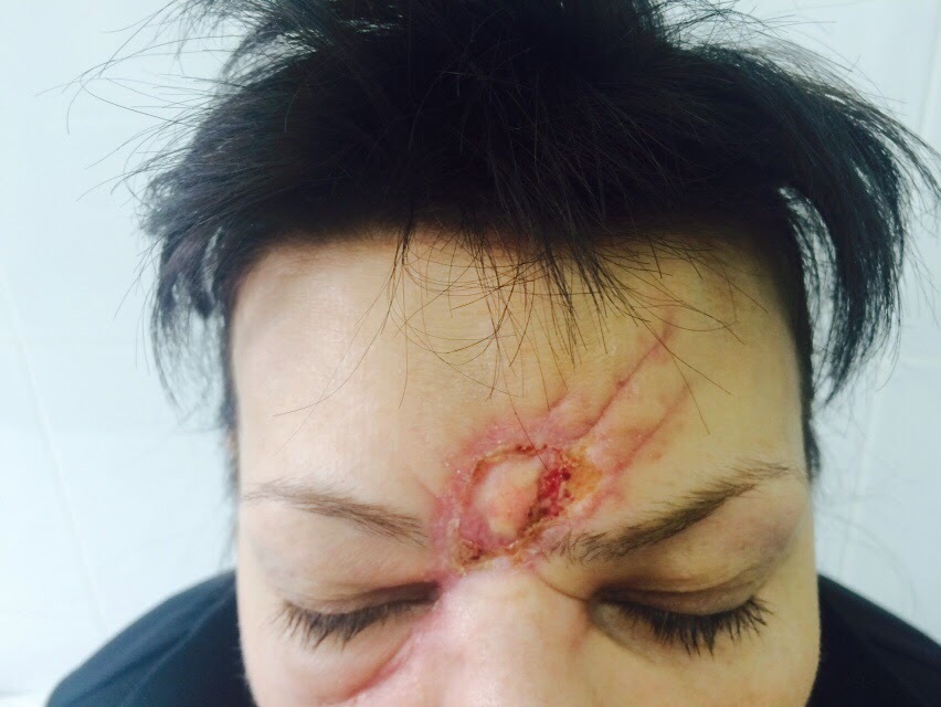 Как и обещал ,выкладываю пример применения дерматома. На фото-укушенная рана, полседствия поцелуя хозяйки с собственным алабаем (ничего против них не имею,люблю собак-но основная масса госпитализированных по поводу укусов имеет отношение именно к алабаям)