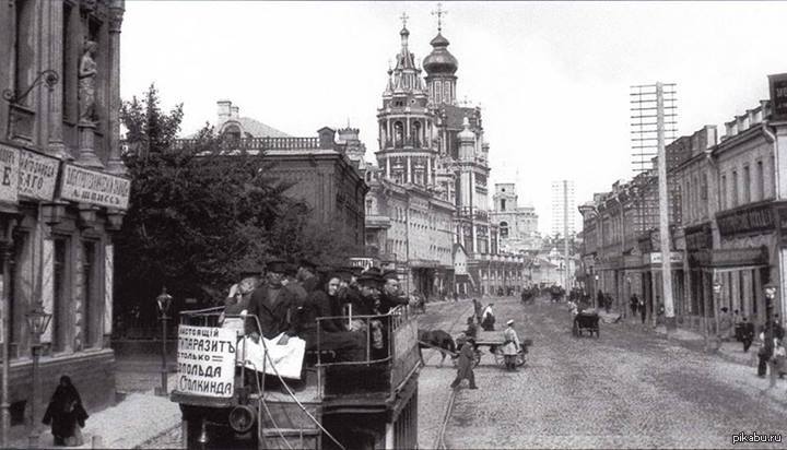 1 zloolz ул. Покровка, 1913г. На переднем плане - вагон конки. 11 лет назад Любопытства ради. Что за столбы на правой стороне, есть варианты? Комент для минусов внутри. Россия Черно-белое Столб 1913