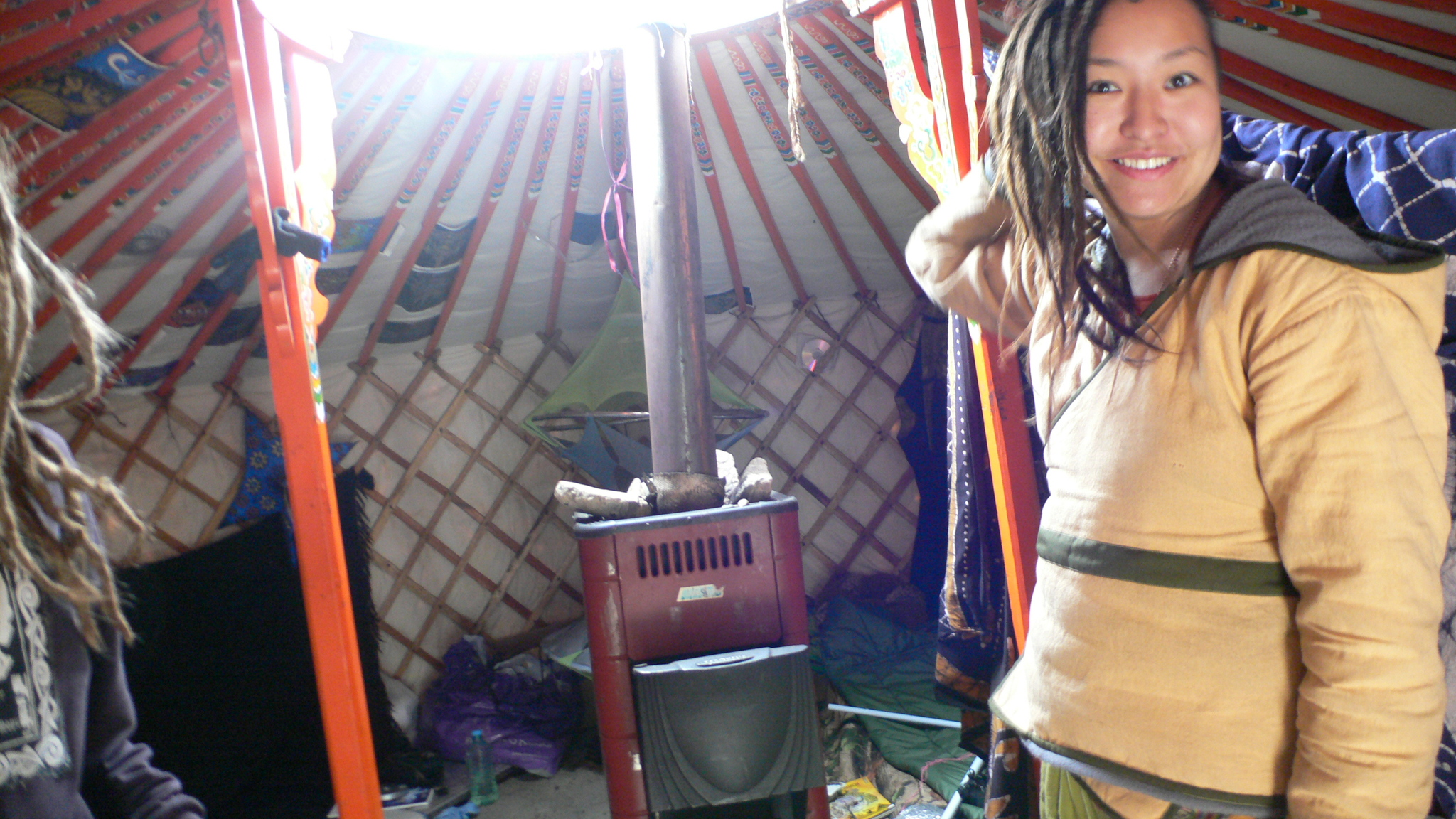 Так вот, в этой юрте нас Настя и приютила на несколько дней. Юрта это Торт. Не зря монголы уже тысячи лет в них живут. Строение весьма капитальное и стационарное, рассчитано на продолжительное проживание. В центре стоит печь буржуйка. Вокруг неё, "солнышком" могут комфортно заночевать около 10ти человек