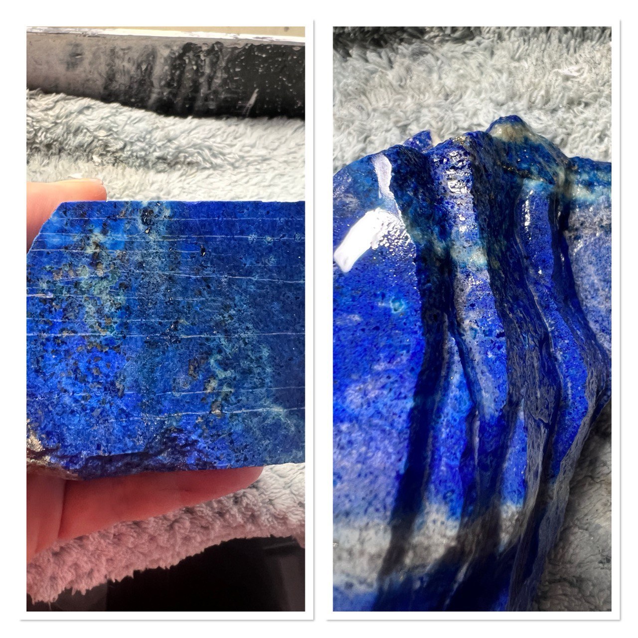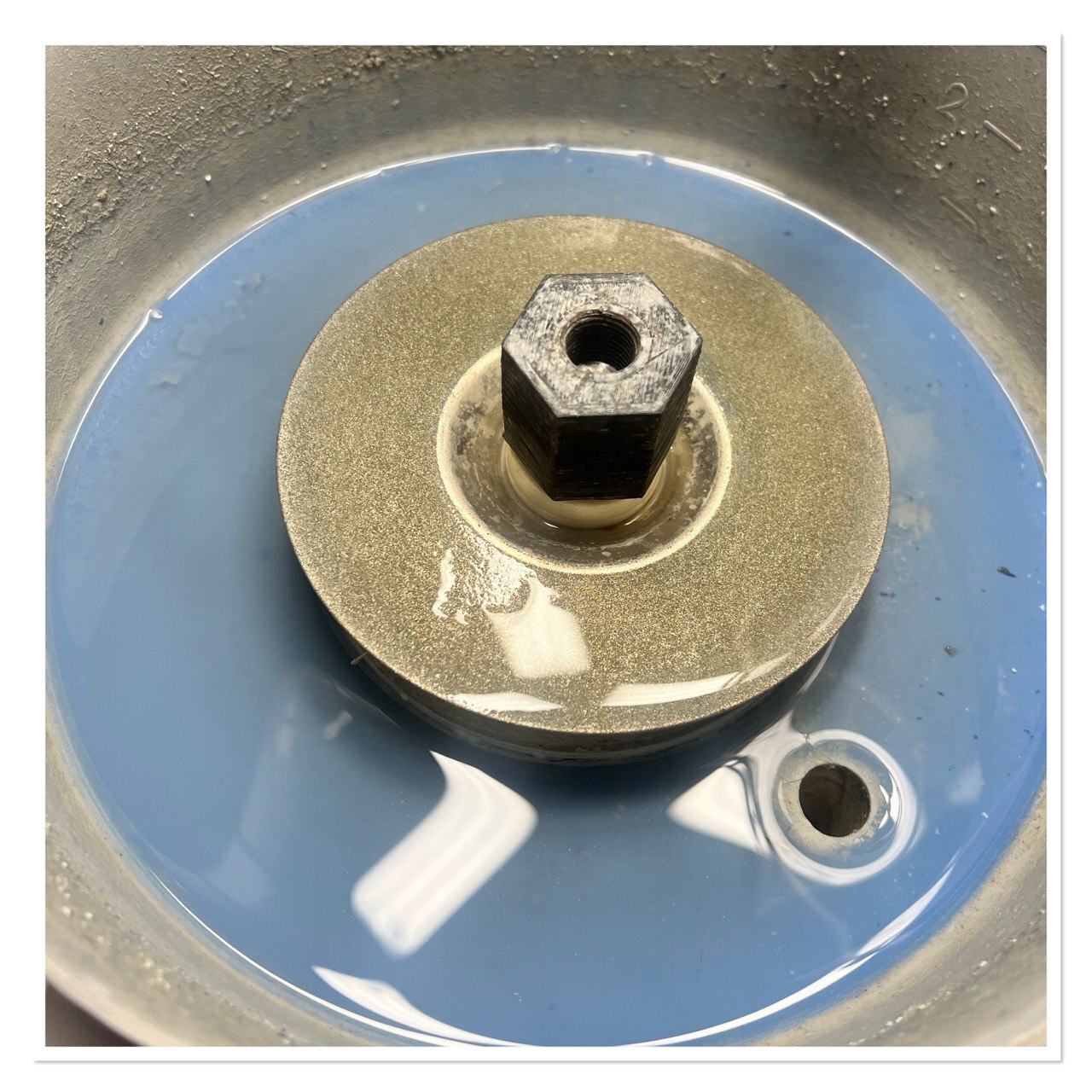 смотрите, какая красивая синяя вода получается при шлифовке азурита