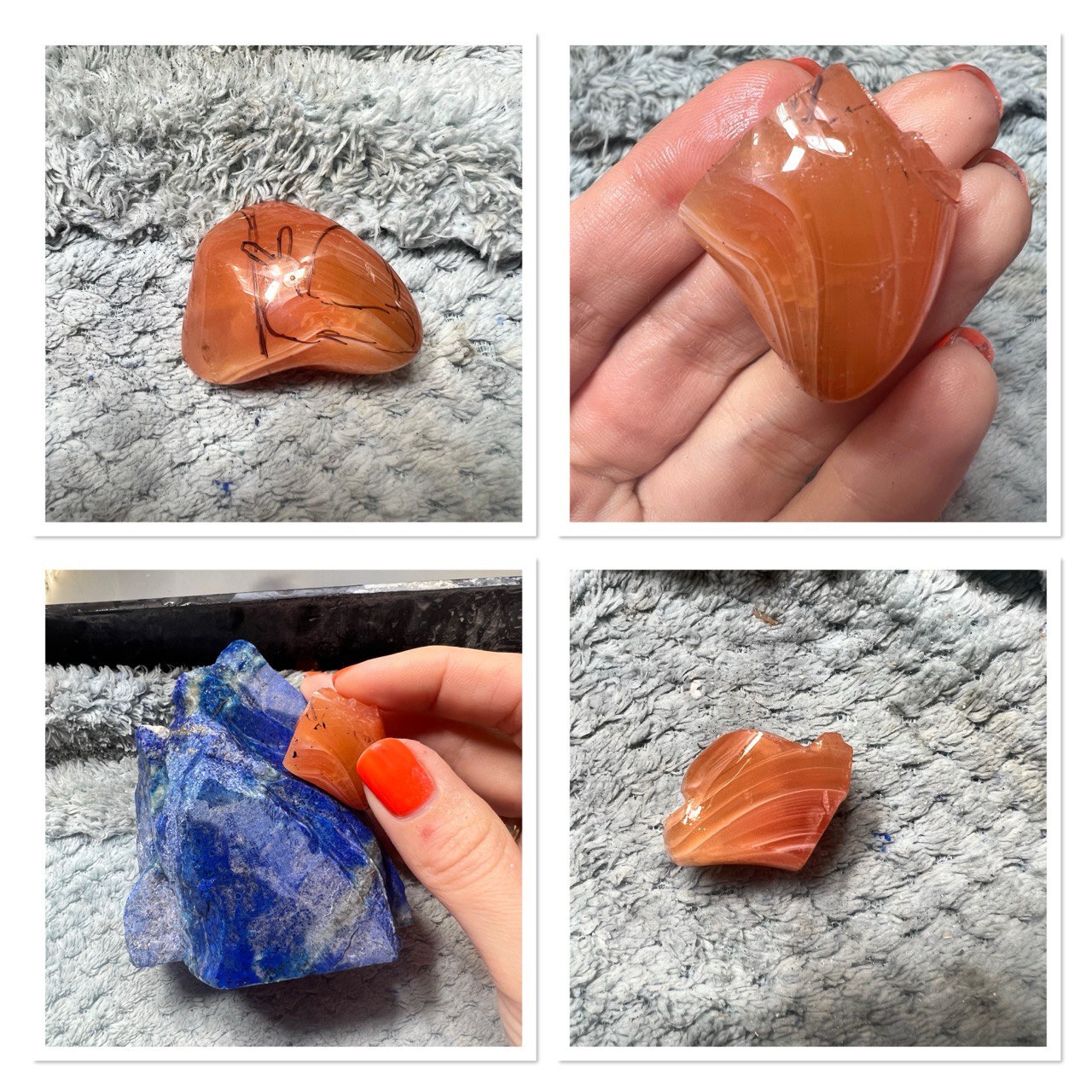 Азурит пока откладываю и принимаюсь за улитку. Сердолик размечаю, обрезаю лишнее и подгоняю основание улитки к месту будущей дислокации
