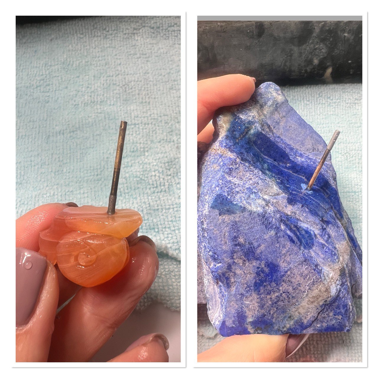С азуритом повезло, природа сама придала ему идеальную форму, мне осталось только выровнять основание и зачистить поверхность