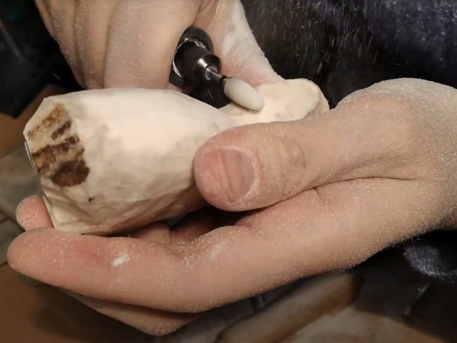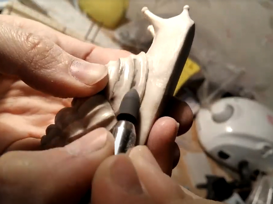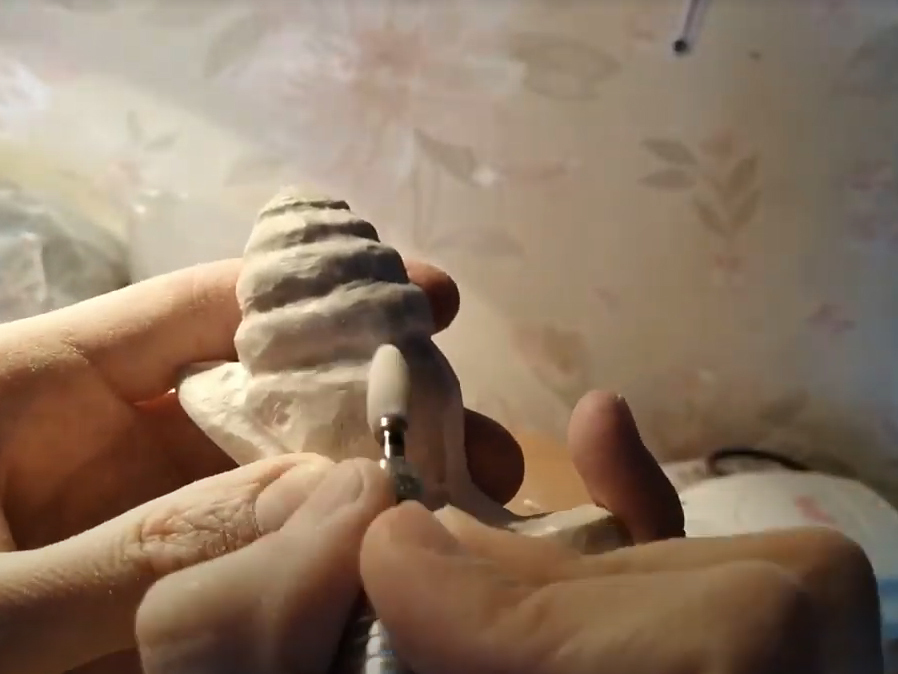 Теперь я беру бор-резинку и разглаживаю раковину и само туловище: