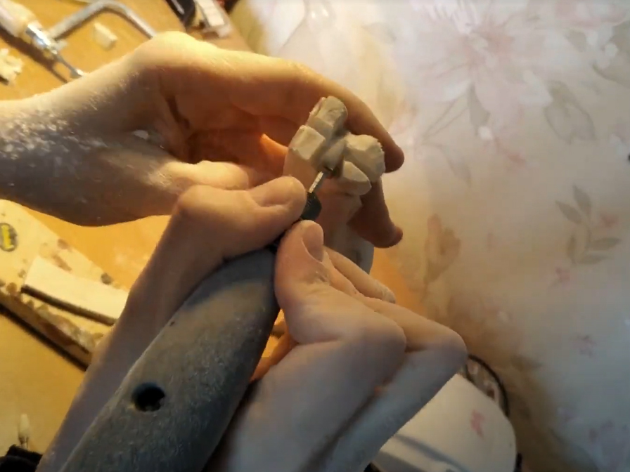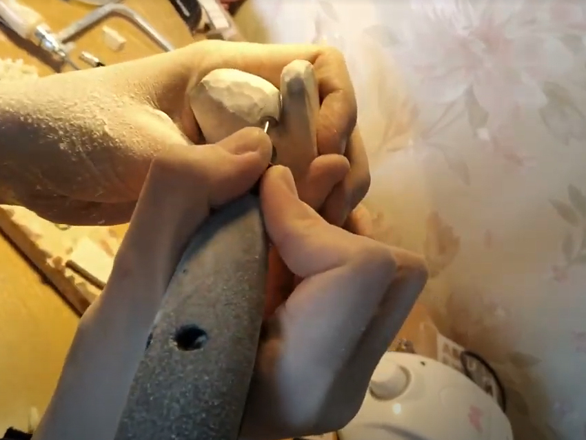 Итак, для начала беру Dremel и придаю грубые очертания фигурке. В прошлых постах я жаловалась, что им неудобно резать, но я говорила про мелкие детали. С грубой обработкой он мне хорошо помогает, так как он мощней, чем Marathon и меньше подвергается (если вообще подвергается) изнашиванию внутренних деталей из-за сильных нажатий.
