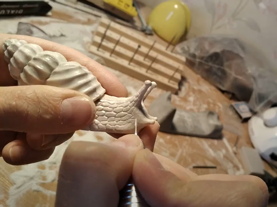 Кстати из за того, что я стараюсь не изменять естественный изначальный изгиб рога, улитка выглядит более живой, будто она в движении.