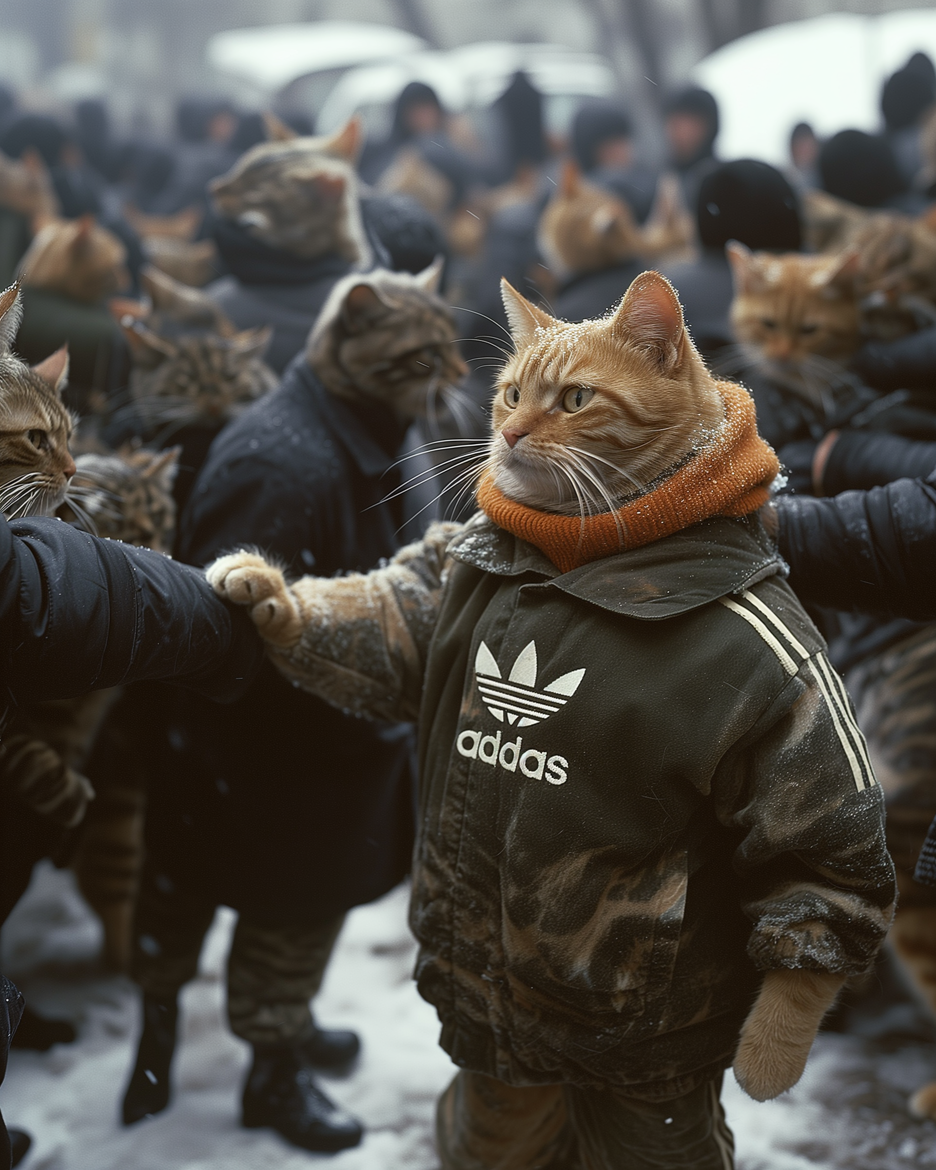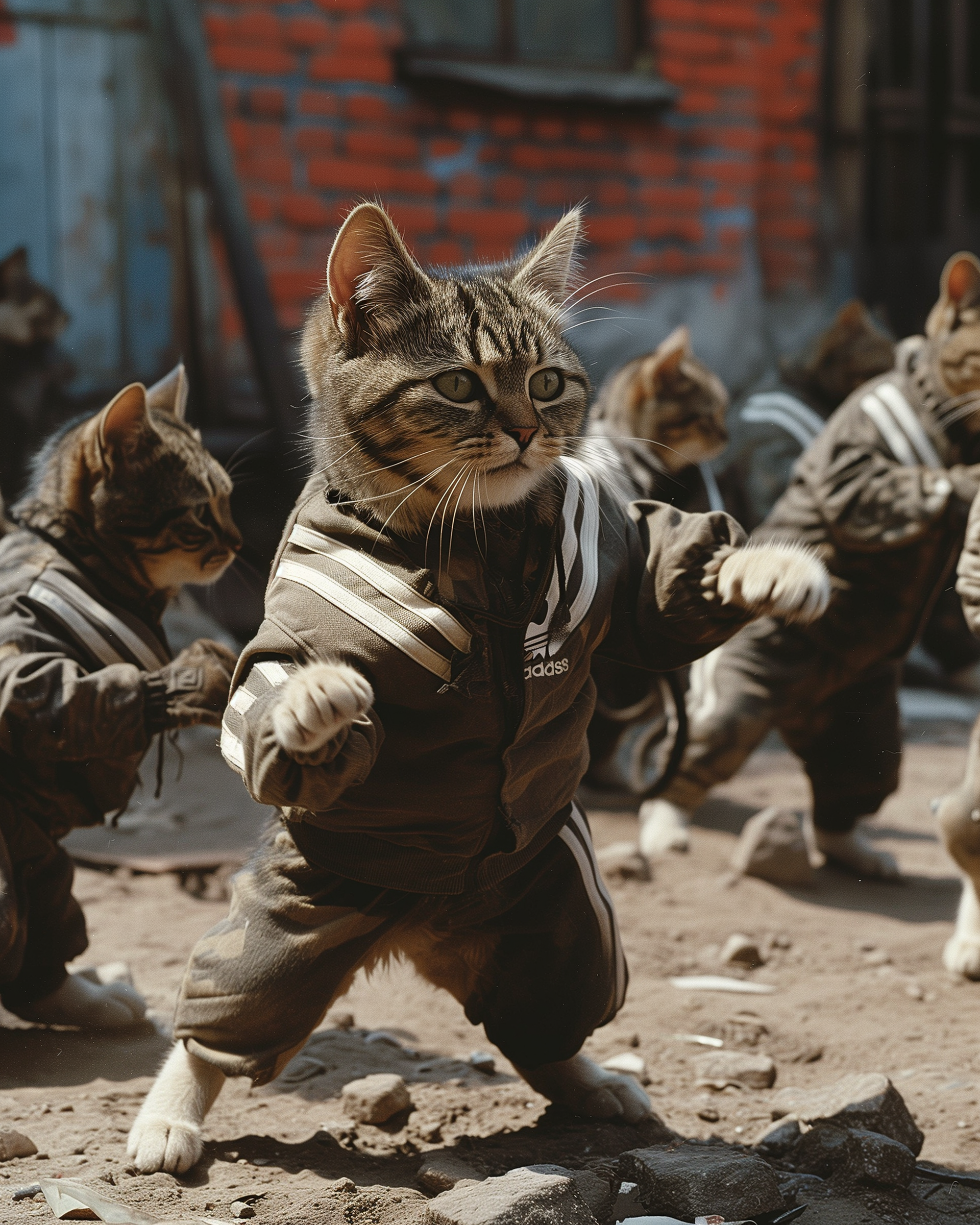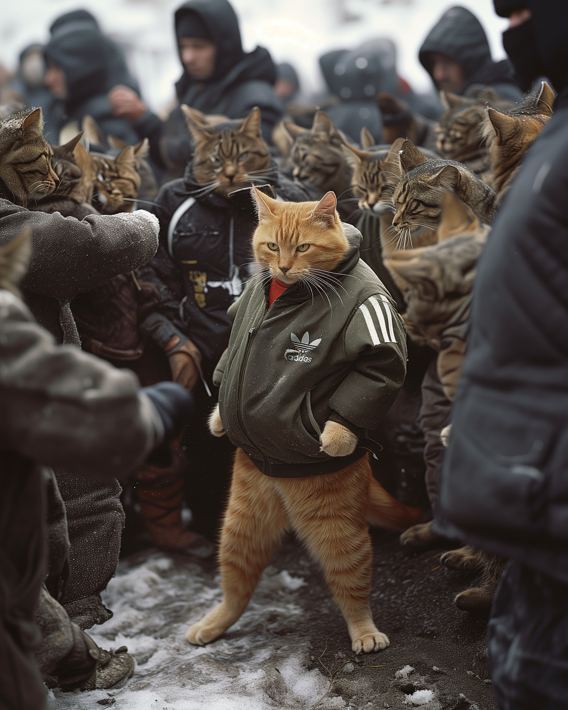 8 Megalania34 Улица теперь наша. Слово кота! 2 года назад Нередко, в середине 80-х коты становились во главе местных банд.Тренили скорлупу. Совершали набеги. Фото слили в сеть.Слово кота!.Творю нейроАрт в Midjourney. Midjourney Нейронные сети Искусственный интеллект Кот Гопники Длиннопост Арты нейросетей 1 1 Ещё 0