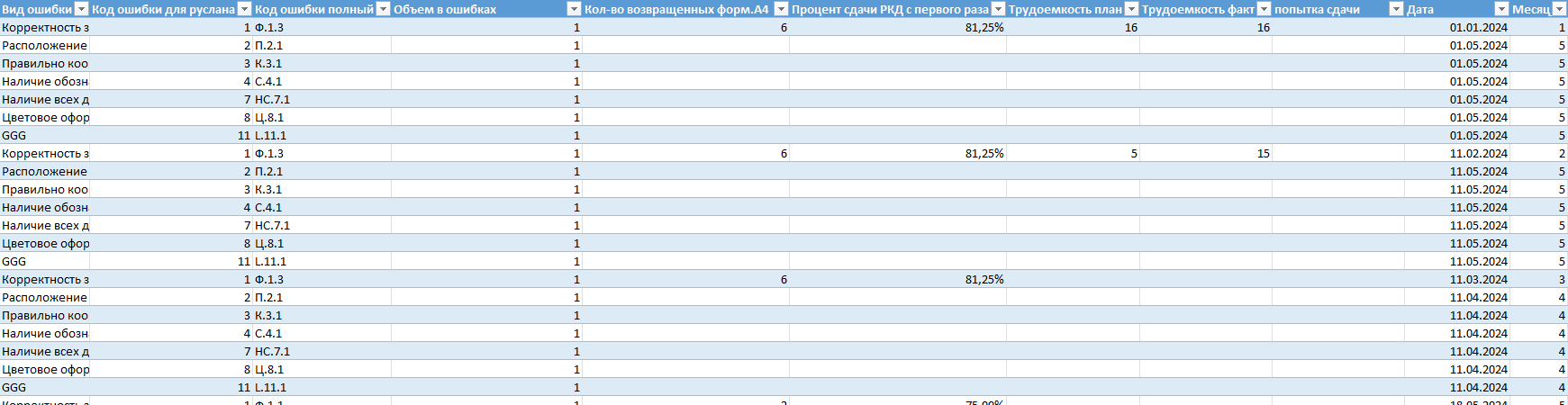 Макрос не только помогает обнаруживать ошибки, но и собирает информацию обо всех найденных проблемах. Эти данные автоматически передаются в базу данных, что позволяет руководителям формировать отчёты и статистику по работе отдела. В конце каждого месяца на основе собранных данных можно легко увидеть количество ошибок, их типы и места возникновения.
