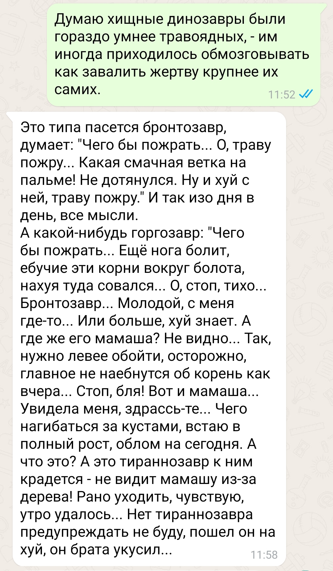 5970 33happy Топовый автор Юмор Умные динозавры1 8 месяцев назад [моё] Юмор Переписка Скриншот Мат Скетч 189 13 3 1 1 Ещё 0