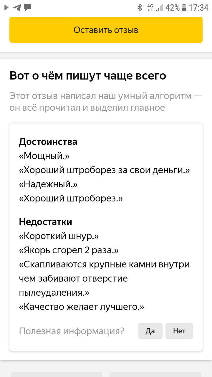 xc6slxVer2 4 года назад Умный алгоритм яндекса усреднил множество отзывов ) Помогли :D Яндекс Отзыв Штроборез Ещё 0