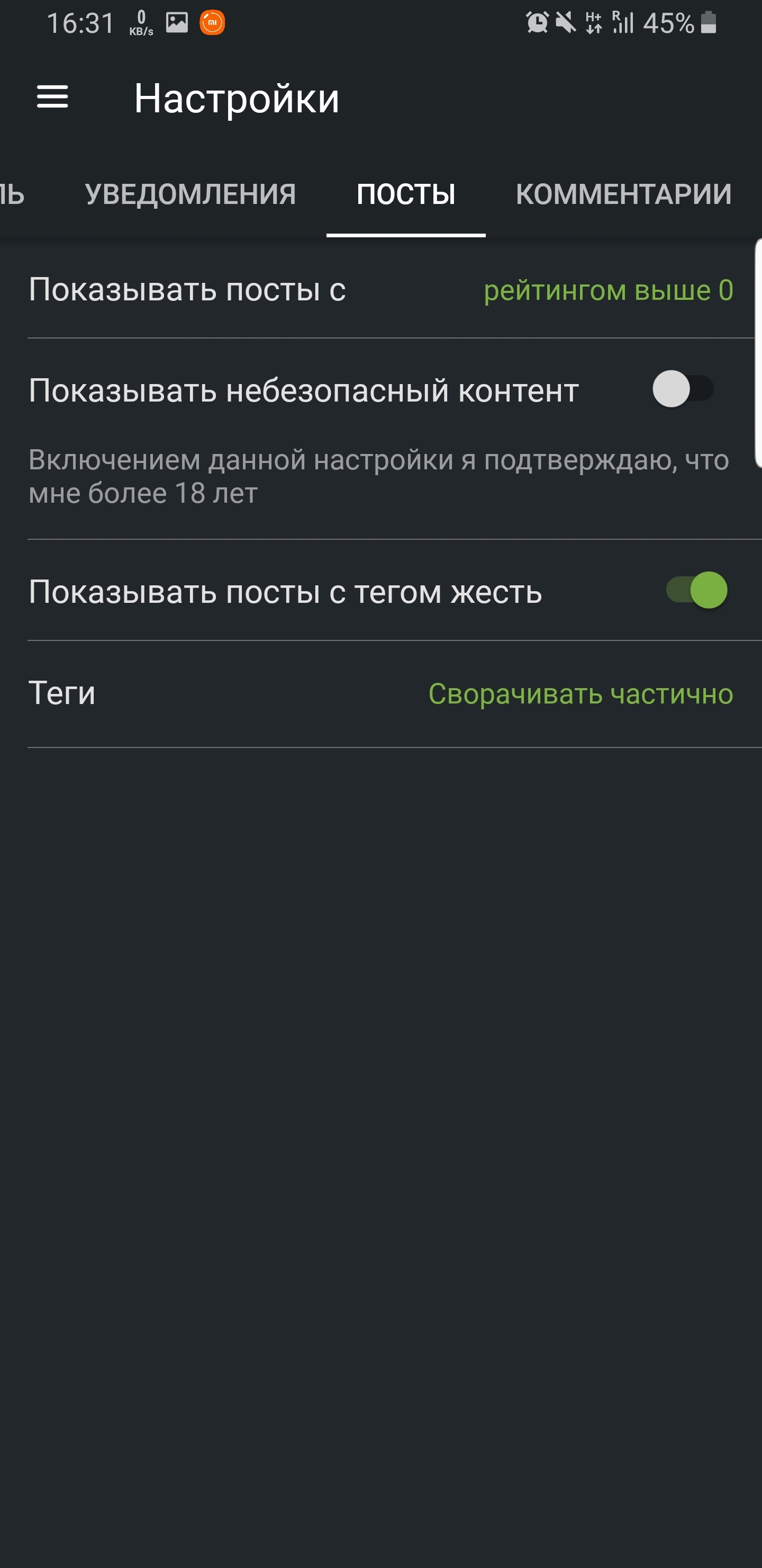 Да чё-т даже включить показ небезопасного контента не получается в настройках, какой уж там «правильно ставить тег».