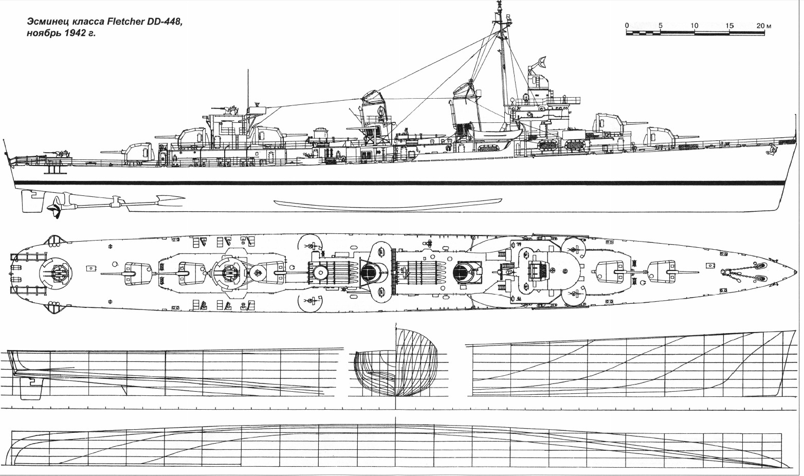 В начале 1943 года все эсминцы типа «Флетчер» были модернизированы. В районе между дымовыми трубами установили три спаренные установки 40-мм автоматов «Бофорс», а число 20-мм автоматов довели до 10-11. Но уже к середине 1943 года зенитное вооружение снова усилили — три «Эрликона» демонтировали, а вместо них перед носовой надстройкой побортно установили еще по одной спаренной установке 40-мм «Бофорсов».
