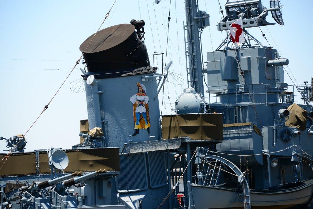 Эскадренный миноносец «Кидд» с бортовым номером DD-661 был заложен 16 октября 1942 года на верфи компании Federal Shipbuilding and Drydock Company в Кирни, штат Нью-Джерси. Корабль был введен в эксплуатацию 23 апреля 1943 года и получил свое имя в честь контр-адмирала Исаака Кэмпбелла Кидда, который погиб на борту линкора «Аризона» во время нападения на Перл-Харбор. Учитывая, что имя корабля было созвучно имени знаменитого пирата XVII века Уильяма Кидда, экипаж корабля попросил разрешения у вдовы адмирала взять в качестве эмблемы «Весёлый Роджер», на что было получено согласие. USS Kidd стал первым американским кораблём в XX веке, который получил право официально поднять пиратский флаг на своей мачте.