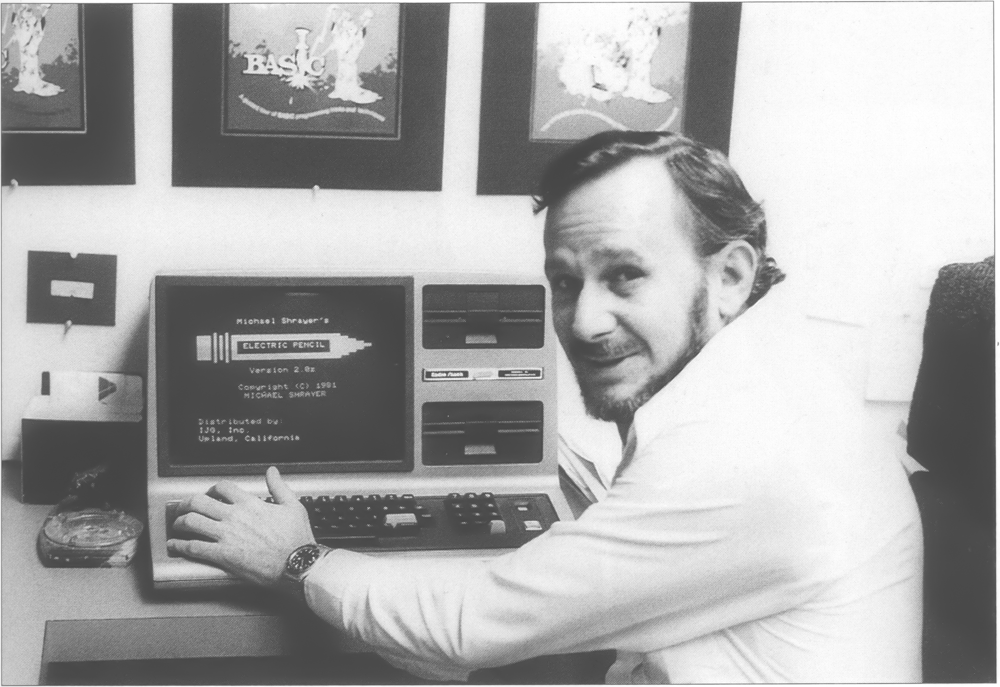 Майкл Шрайер демонстрирует свое изобретение - первый текстовый редактор Electric Pensil, 1976 год