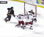 3. Недоумевающий вратарь торопится назад в ворота и... гол. Никто не видел где шайба, даже подоспевшие защитники и нападающие.