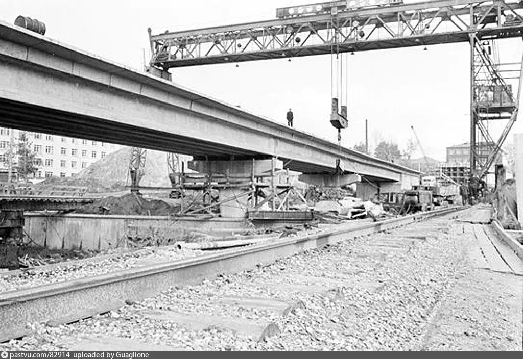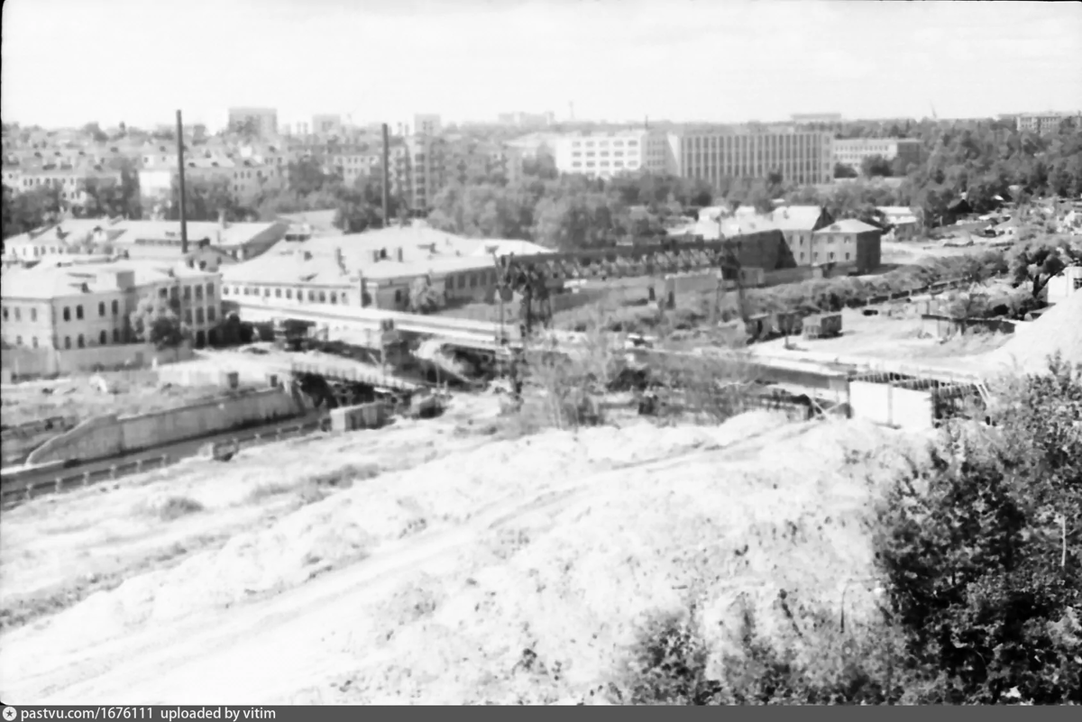 Строительство метромоста, 1964. Вид из дома №5/7 на Преображенской улице. Автор фото: В.В. Тимошенков. С сайта www.pastvu.com.