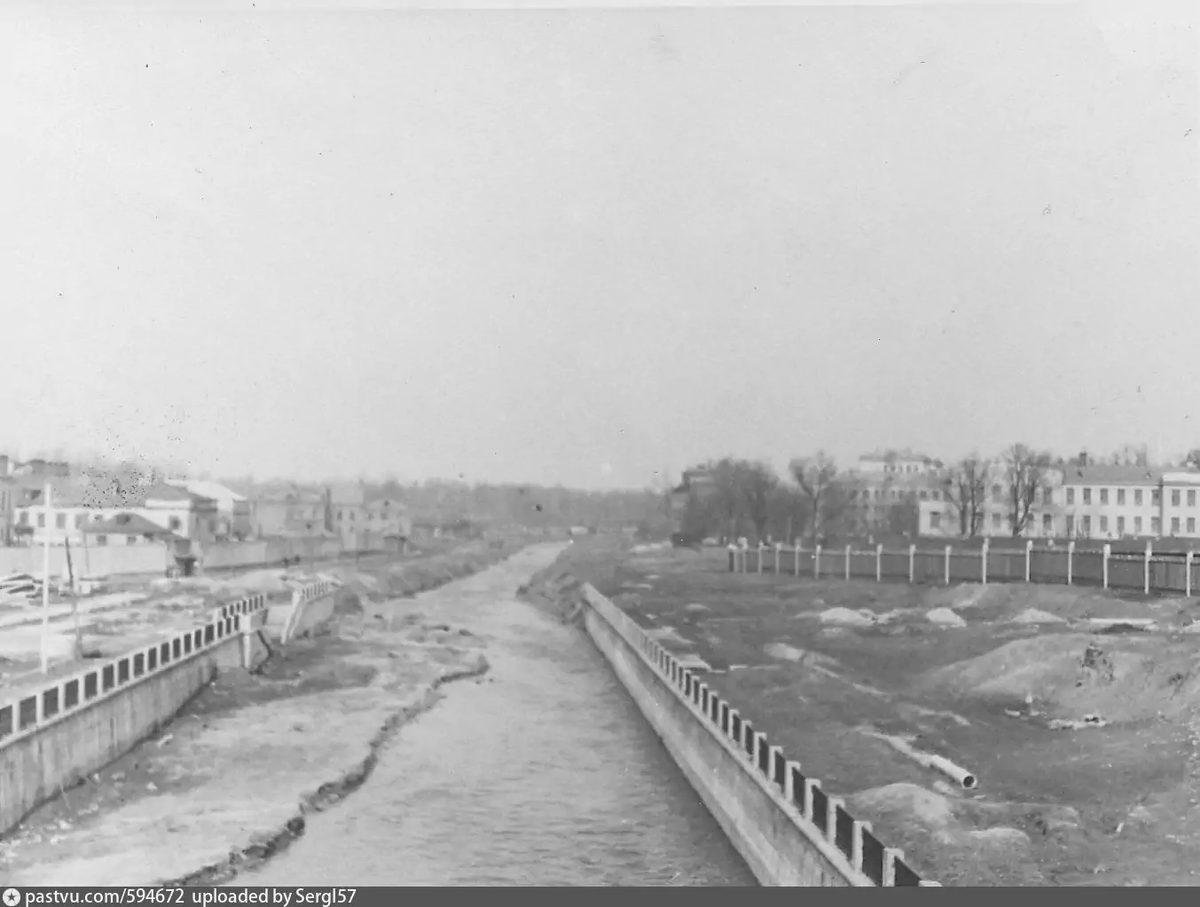 Вид на то место, где потом начнут строить Преображенский метромост, с Матросского моста через Яузу, 1959. С сайта www.pastvu.com.