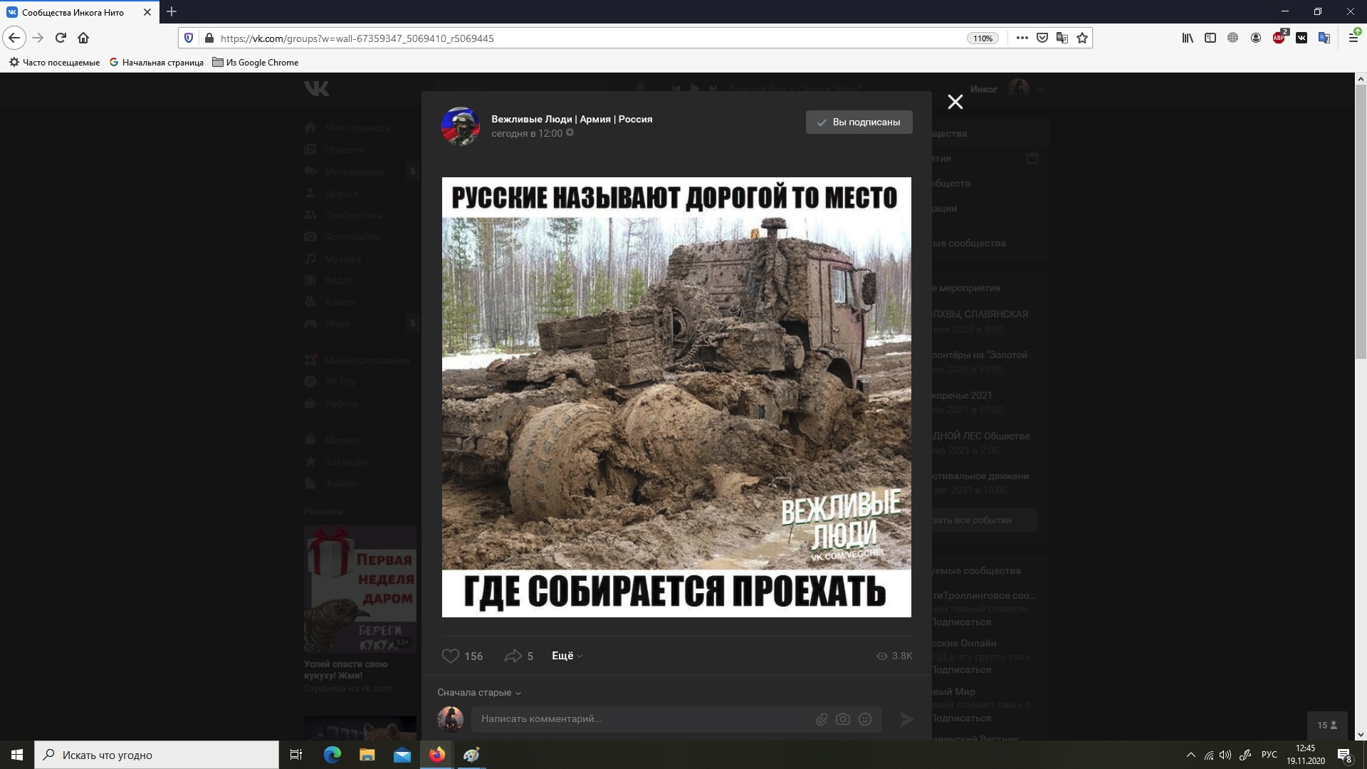 sdffghjh7 Уникальный патриотизм...) 5 лет назад Столкнулся тут с группой "квасного" патриотизма) Они там даже наши убитые дороги превращают в достоинство). Такого идиотизма в 21 веке не ожидал точно) "Тем и живы" пишут))) Было бы смешно не будь так грустно... Юмор ВКонтакте Бездорожье Патриоты Ещё 0