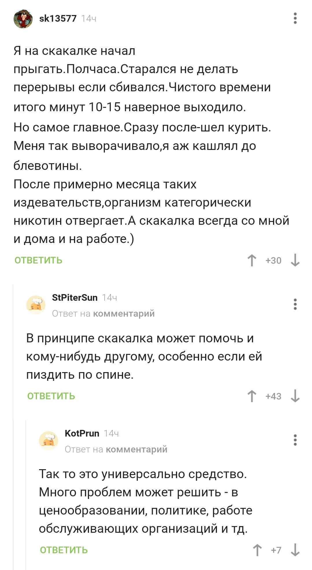 2057 S3my0n Универсальное средство 4 года назад Источник: #comment_207187199@KotPrun, @StPiterSun, @sk13577 Скриншот Комментарии Комментарии на Пикабу Борьба с курением 11 6 5 Ещё 0
