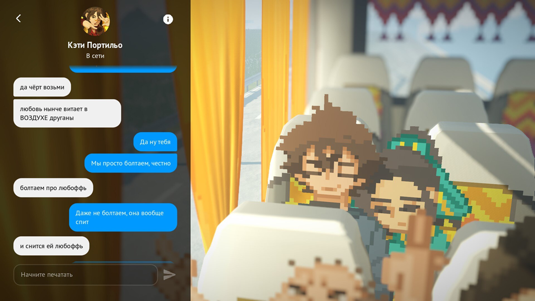Ещё один элемент, придающий героям живости – постоянные переписки. Марк большой любитель позалипать в телефоне, поэтому нам нередко будет представляться возможность полистать новостную ленту, посмотреть и отреагировать на посты других ребят, с которыми парень учится в школе. Кто-то даже может упомянуть при живом общении, что Марк лайкнул или репостнул их запись, что для меня вообще +100 к погружению. Но самое золото – это, как я упомянул выше, переписки с друзьями. Не знаю, чьей заслуги тут больше, авторов оригинала или тех, кто переводил игру на русский, но насколько же забавно и естественно воспринимается местный чат. С некоторых моментов я прямо в голос смеялся. Кстати, интересное наблюдение; мимика героя меняется в зависимости от содержания входящих сообщений. Мелочь, которую я заметил случайно, но которой был крайне приятно удивлён.