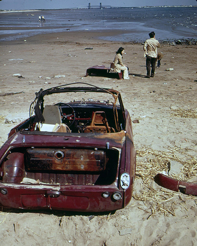 Остатки Триумф Сапфир на Плюм-Бич, Бруклин, Шипсхедбэй, 1973 год. Вдали виден мост Марин-парквэй ведущий на полуостров Рокавэй.