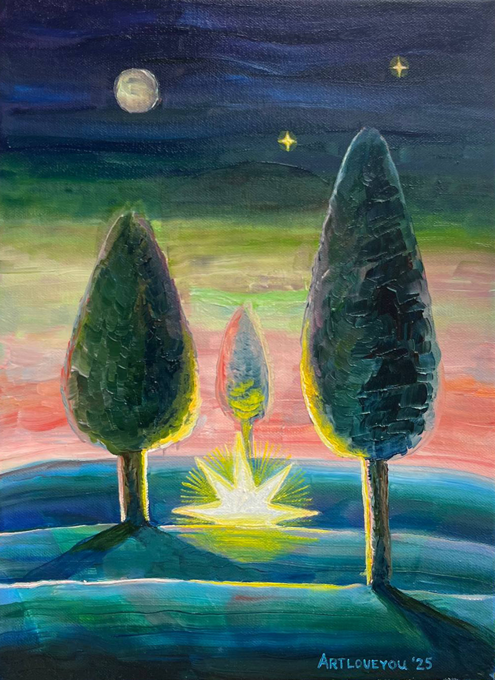 1 Artloveyou Упавшая звезда 2 месяца назад Холст, масло, 30х40см Написал по сказке о Звёздном Мальчике. Любил в детстве эту сказку. Хотелось создать что-нибудь такое, на что ребенку можно смотреть перед сном, лёжа в кровати и мечтать о своём. Живопись Картина маслом Картина Ещё 0