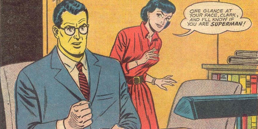 В комиксе Action Comics #317 под воздействием красного криптонита Супермэн превратился в Супер-Палево. Ну, как…его лицо начало менять цвет в зависимости от его эмоций. Особенно палевно, когда такое происходит не с «Символом Надежды», а со скромным репортёром Кларком Кентом. Испугался он чего-то – и пожелтел, будто геолога встретил. Обзавидовался – и позеленел. Возненавидел кого-то – ваще почернел. Ничего, прошло – эффект от красного криптонита редко держится дольше суток. Правда, именно в тот день Кларку Кенту пришлось с утра до вечера пробыть в одном помещении с Лоис.