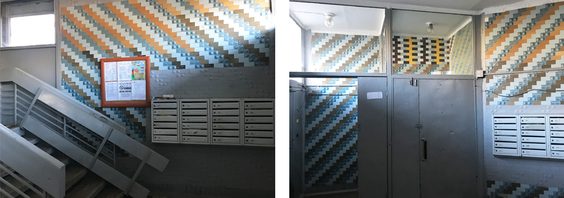 Издалека еще ничего. Темно в подъезде, но хотя бы не так видно все убожество.