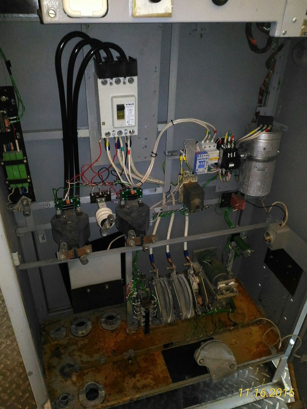 Силовые цепи включают автоматический выключатель, трансформаторы тока и контактор