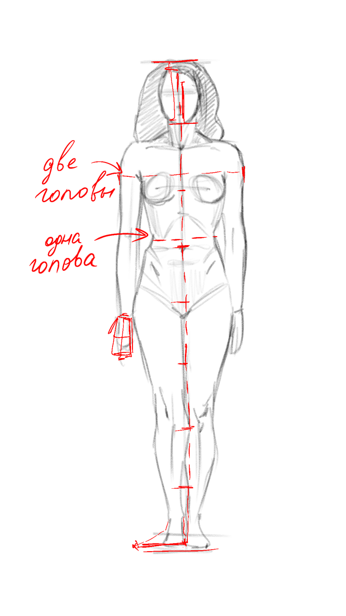 5. Ширина плеча равна длине головы, соотвественно общая длина плечевого пояса – будет равна двум, развернутым головам.