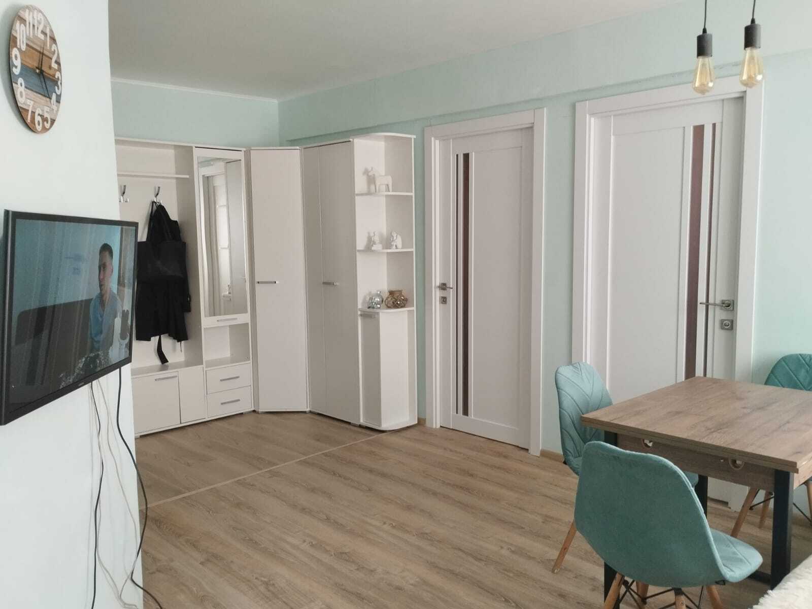 Знакомая панелька) Получается, у вас трешка, зал с кухней соединен, и там 2 спальни? Такой махонький телевизер), а где у вас стоят компы для игор?
