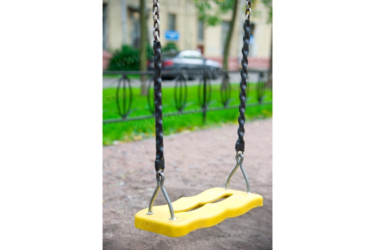 Само сидение сделал из покрышки. Чтоб не дай Бог, ребенка при падении по голове не шибануло! Цепь разделена и закреплена карабинами, это дает возможность регулировать высоту.