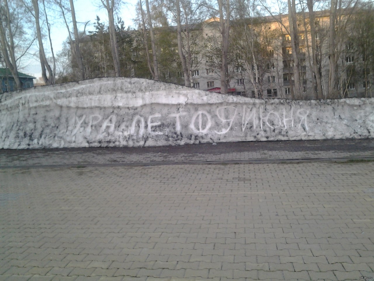 TimofeevPht Ура! Лето! 9 июня! 10 лет назад Николаевск на Амуре. Подруга прислала, правда ребята которые писали, ошиблись в числах. Ну или писали на будущее : ) [моё] Лето Снег Дальний Восток Николаевск-на-амуре