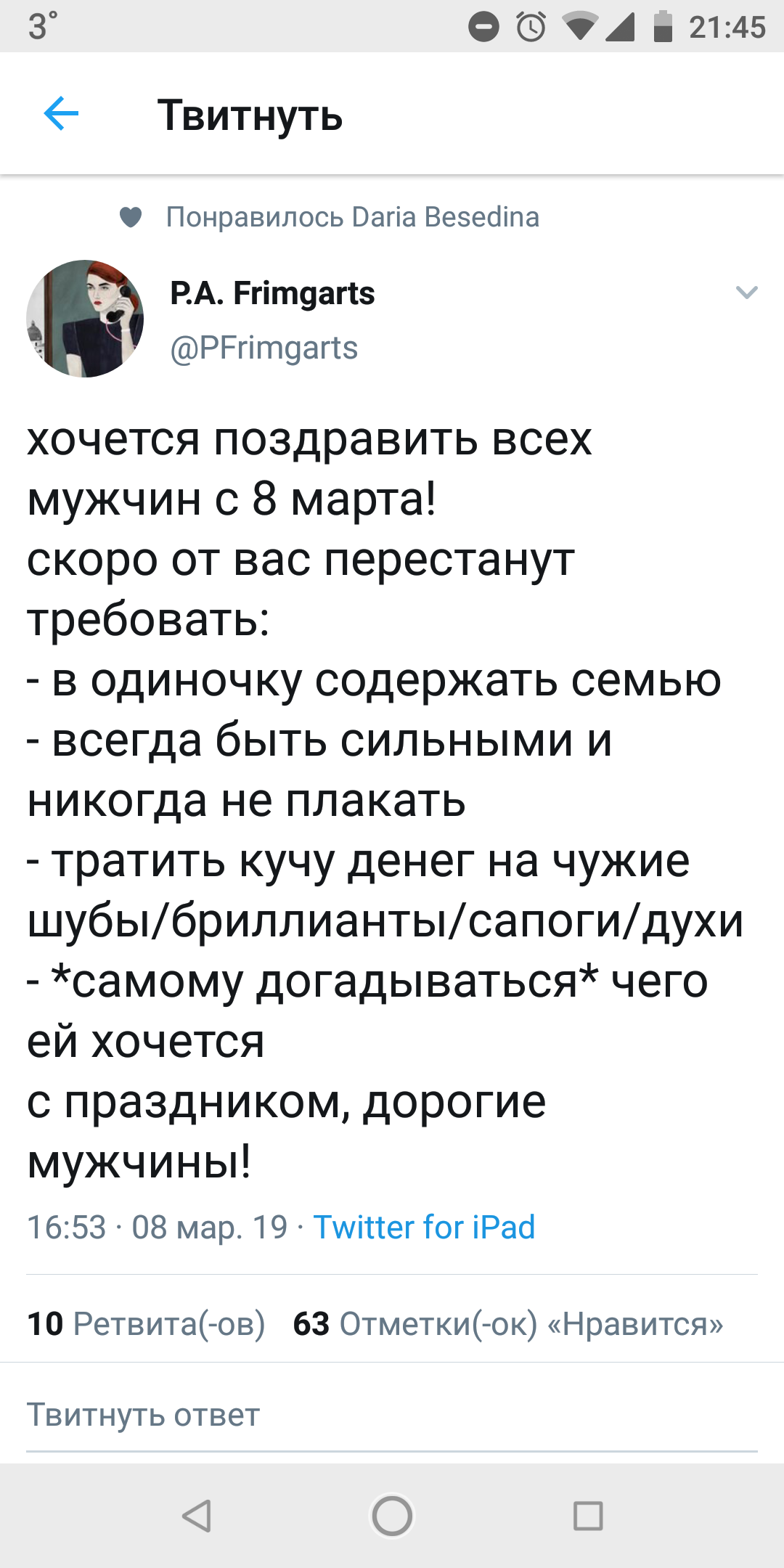 8 ilyaser Ура, товарищи! 6 лет назад 8 марта - Международный женский день Феминизм X (Twitter) Картинка с текстом