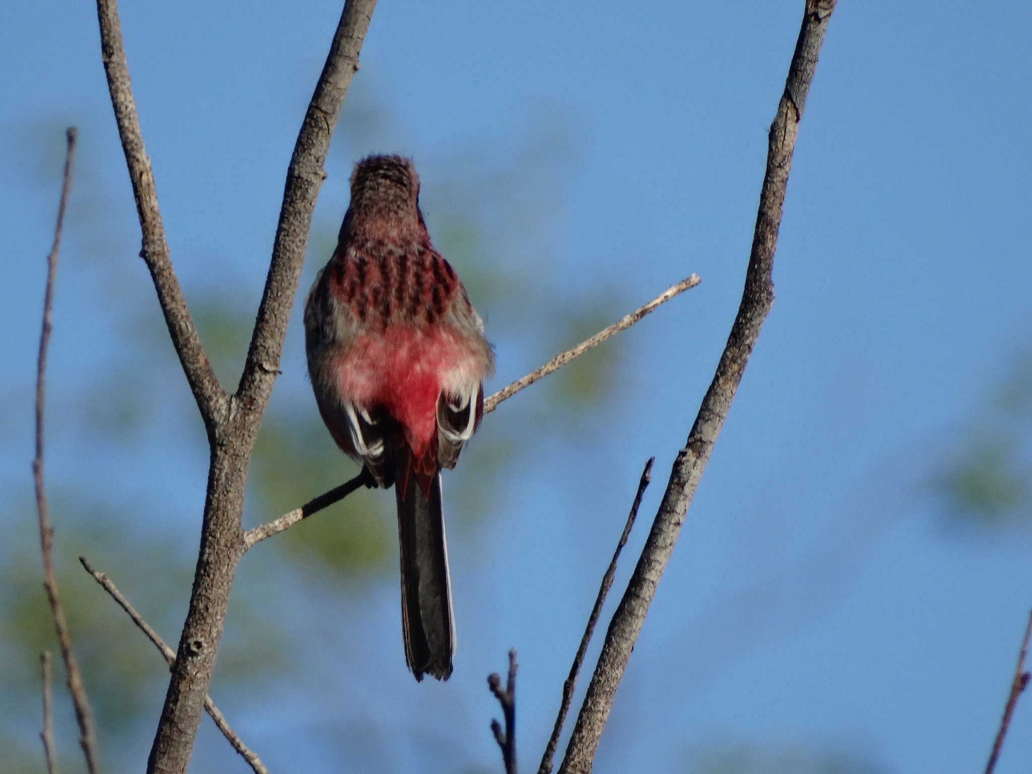 Немного путешествуя локально по Благовещенскому району (Амурская область).Можно часто встретить эту красную птаху.Издают такие "сигналы" – свистовое «пить», «пить-пить-пить», «прить», «фить», «пють-пить», «пють-пить-пить», обычно – негромкое, а также «фю», как у снегиря, но выше тоном и тише. Песня – приятные мелодично журчащие свистовые трели, которые могут звучать в виде коротких фраз, или эти фразы сливаются в отрывки длиной до нескольких секунд. Поют, сидя на кустах, или в невысоком токовом полете. Поют мало, в основном в предгнездовое время. Перелетая, издают крыльями довольно громкое «фрррр, фрррр...»