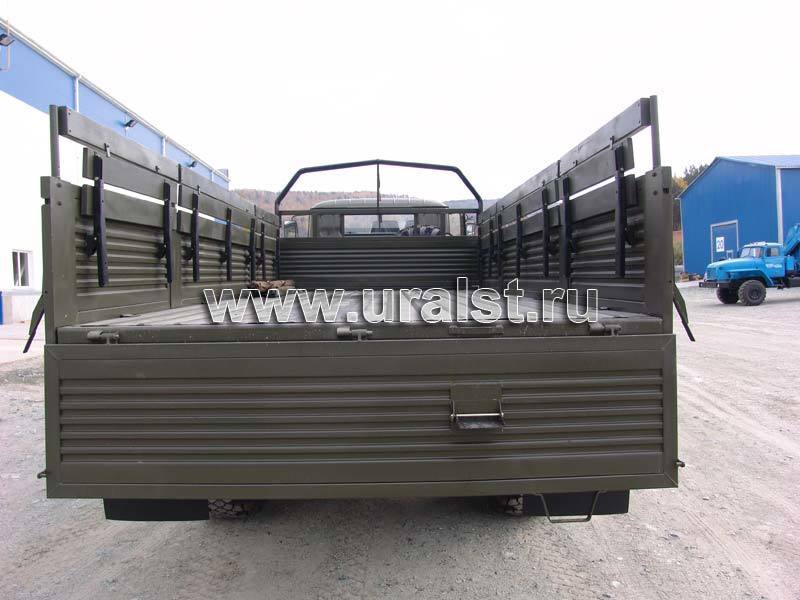 Борта, конечно, откидываются) будем считать, что народ минуту назад высадили, борта подняли, а таблички вот только собираются убрать. Так-то они обычно на тент крепятся, но тент в наборе похож на что угодно, только не на брезент.