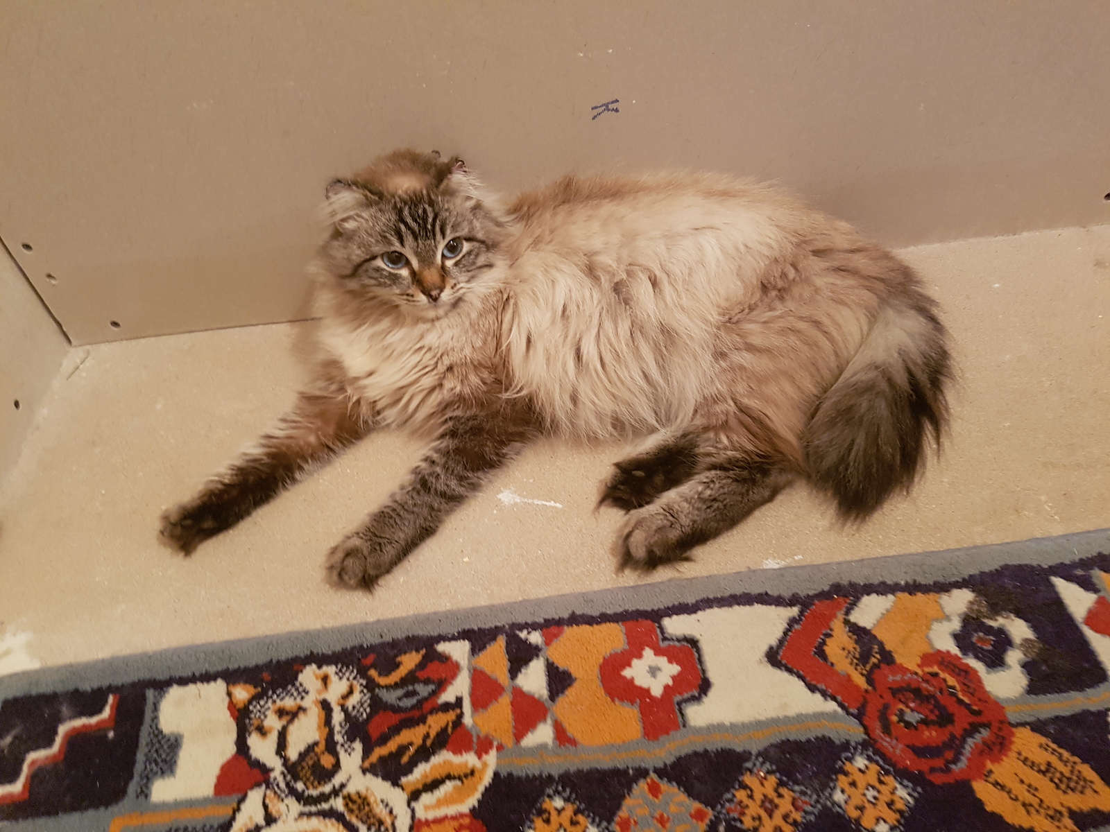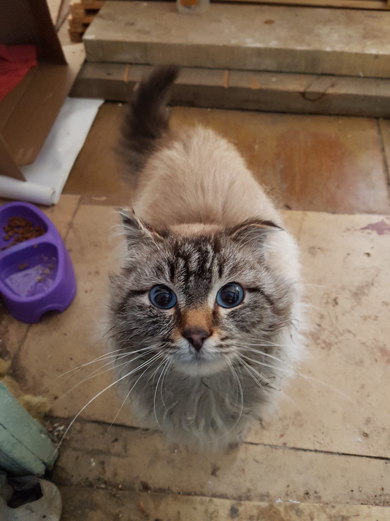 Так мы получили 0.75 кота на руки после всех манипуляций. Пока с ним возились, жена влюбилась в голубые глаза, наш кот его принял, так и остался у нас. Нарекли Мишкой за уши кральками как у медведей.