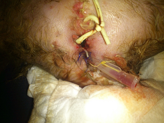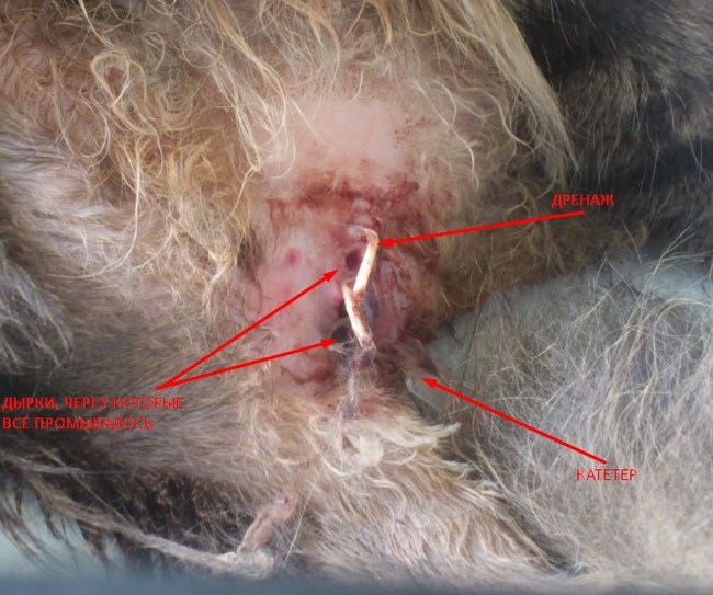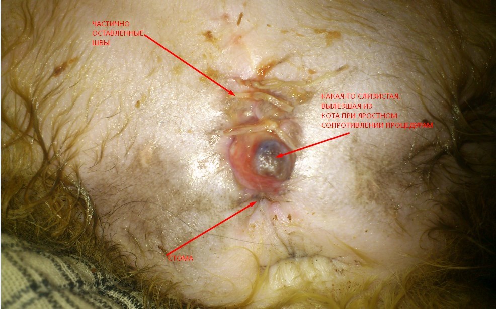 По словам нашего доктора: «Ой, это очень-очень плохо», срочному вызову ассистентов из комнаты для обеда и суетливости, я догадалась, что все действительно плохо. Поразительная проницательность, правда?)) Кошачью пузяку тщательно промыли, поставили дренаж, натыкали уколов, дали препараты для инъекций на дом. Сказали, что если эта беда пойдет вниз и дойдет до сформированной стомы, коту кранты. Пожелали, уже без былого оптимизма, увидеться на снятии швов.