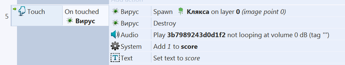 Щелкая мышкой по вирусу, мы его убиваем, причем вирус должен генерировать кляксу на стене. Можно также добавить звук.