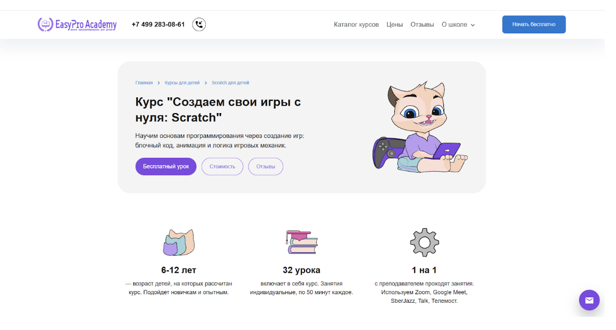 Онлайн-уроки Скретча для детей 8–10 лет от Kodland