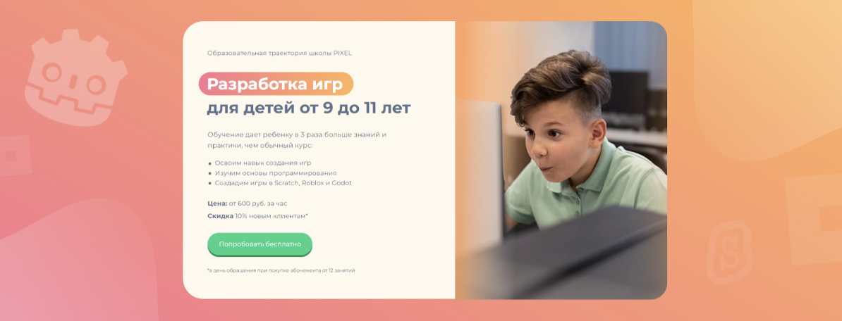 Траектория «Разработка игр» для детей от 9 до 11 лет от международной школы Pixel