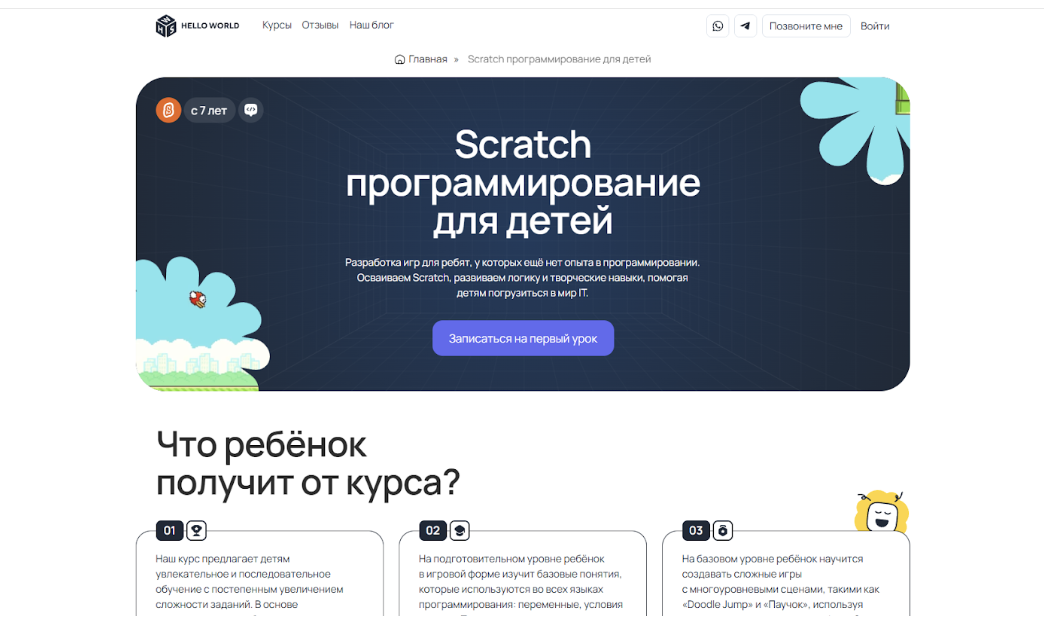 Scratch-программирование для детей 7 лет и старше в Hello World School