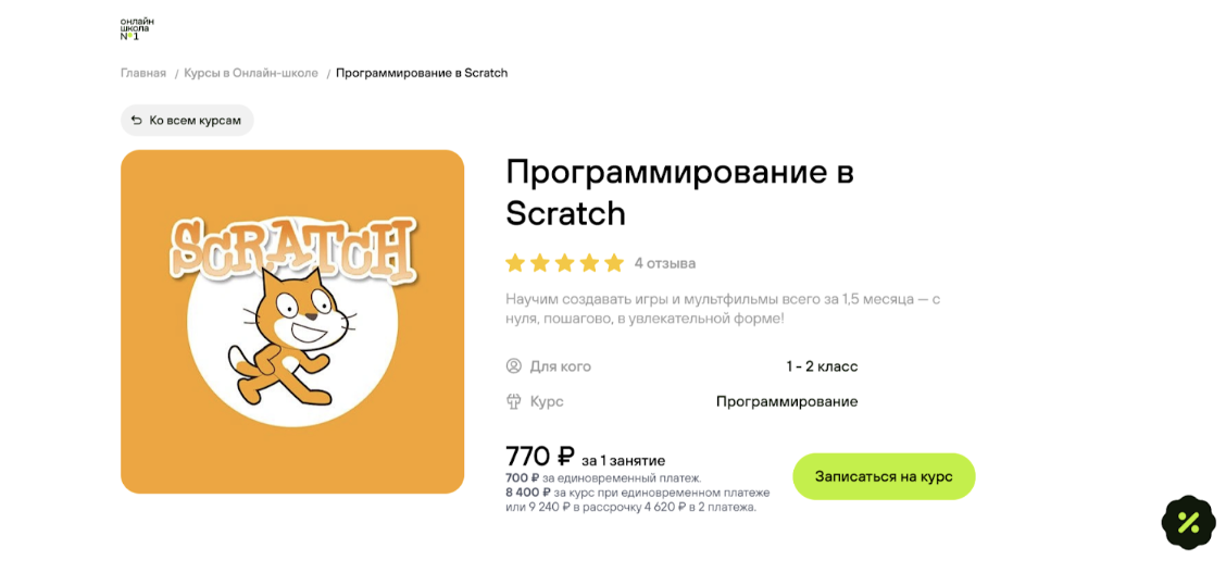 Дистанционный курс блочного программирования в Scratch для школьников от 7 до 8 лет от OnlineSchool №1